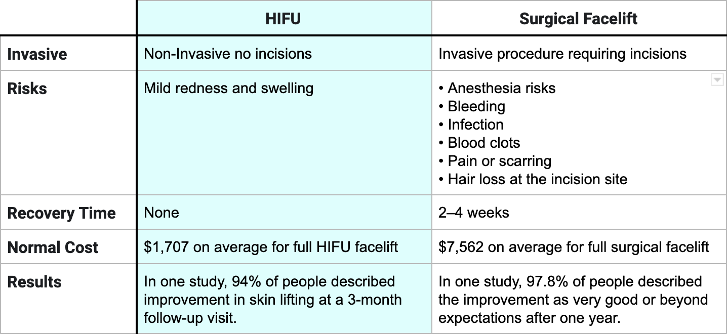 HIFU which stands for High Intensity Frequency Ultrasound uses ultrasound waves in multiple wavelengths that penetrate the skin to specific depths which cause the body to produce more collagen, which can help improve the overall structure and elasticity of the treated areas.